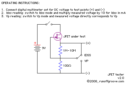 Fig.10 shows the setup required to measure Vp and Idss for an N-channel JFET.