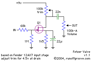 In the two years since the Fetzer Valve was first published in the midst of our adaptation of tube amps for use as distortion pedals, the circuit has enjoyed popularity as a standalone booster and as a building block in larger circuits. While the circuit has its merits, we decided to further explore it to determine if it was a truly faithful solid-state version of the familiar input stage used in many tube amps.