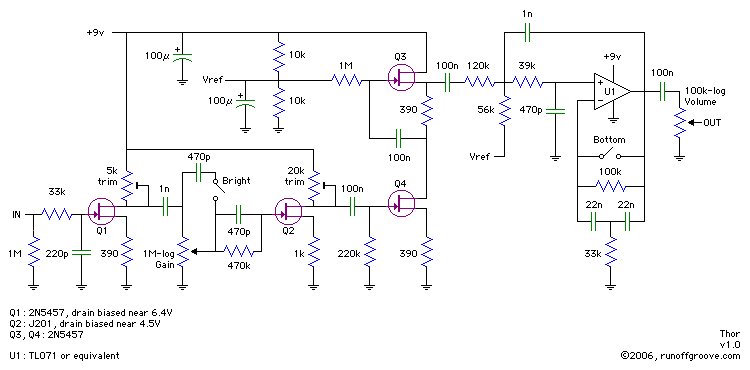 The circuits developed by runoffgroove.com have historically been focused on the balance between good tone and circuit complexity. Our previous attempts at capturing the sound of the cranked Marshall Super Lead amplifier sound used this approach, resulting in the Thunderchief (2004) and Thor (2006) pedals.